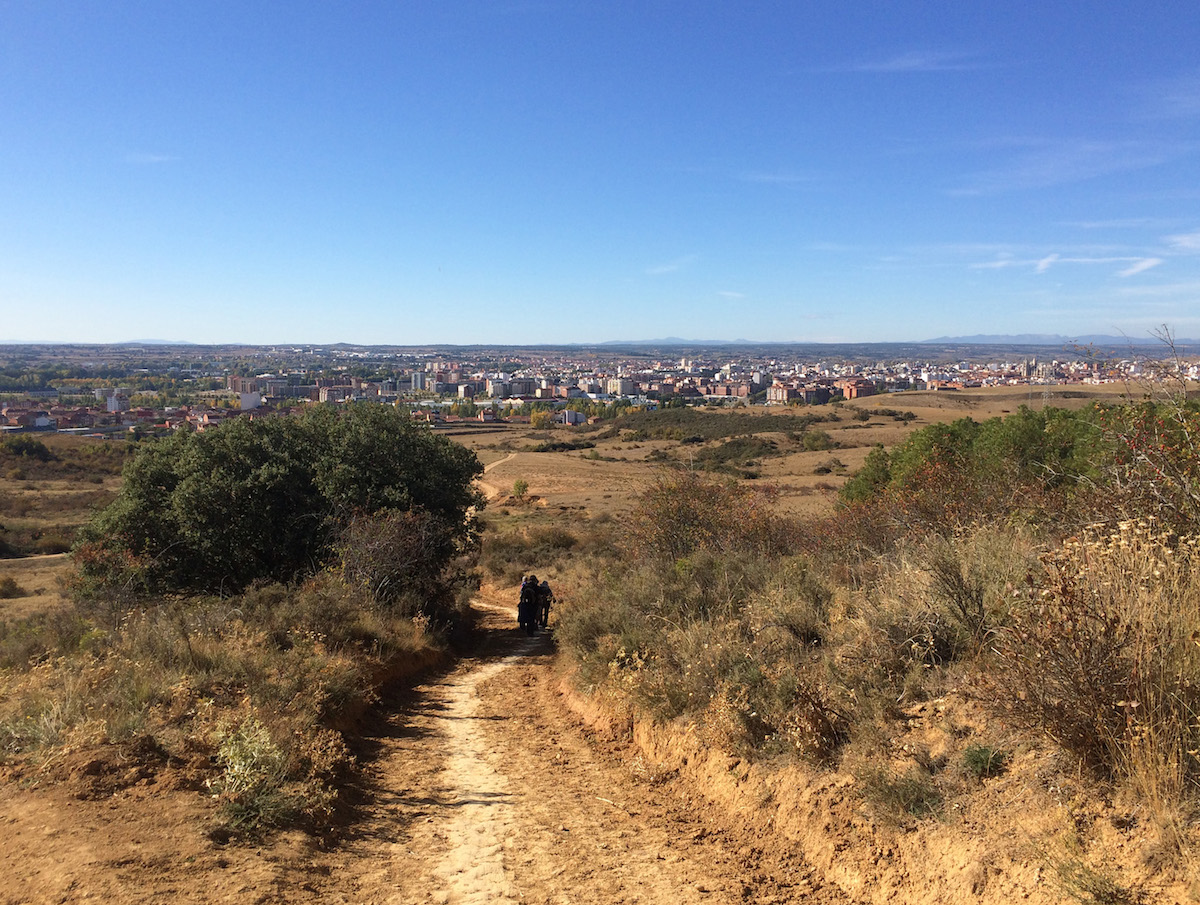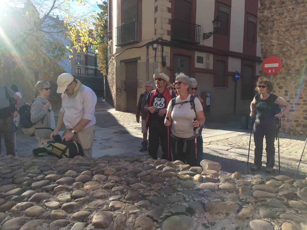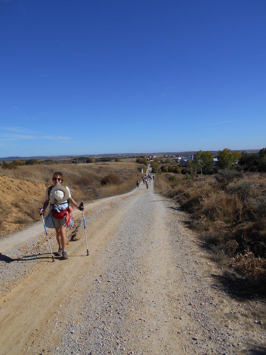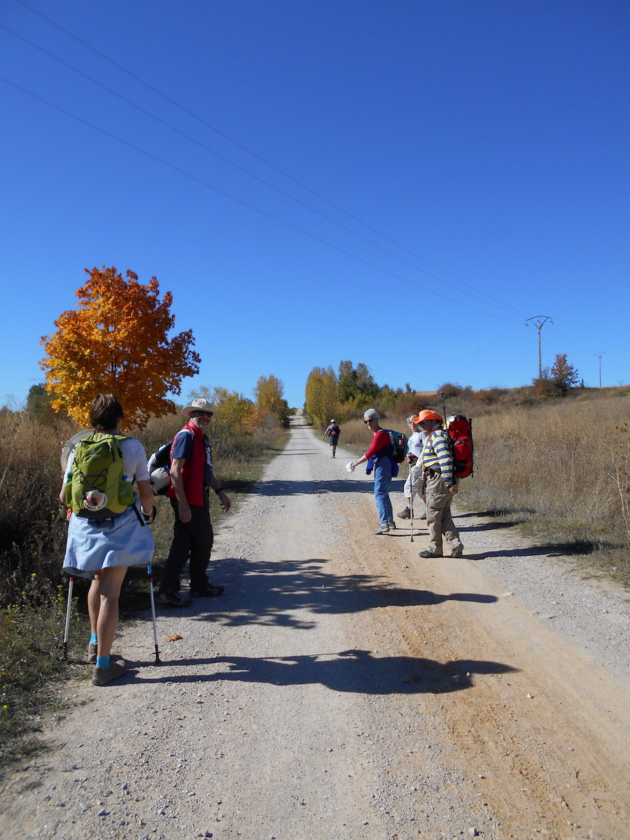 Marche dans le long désert agricole de la Castille : chaumes fanés, maïs desséchés, peuplier dorés sur fond de montagne violette. A un détour, une passerelle nous conduit au village de Puente Villarente : magnifique pont de vingt arches robustes en pierre ocre qui rythment le paysage depuis des siècles.
