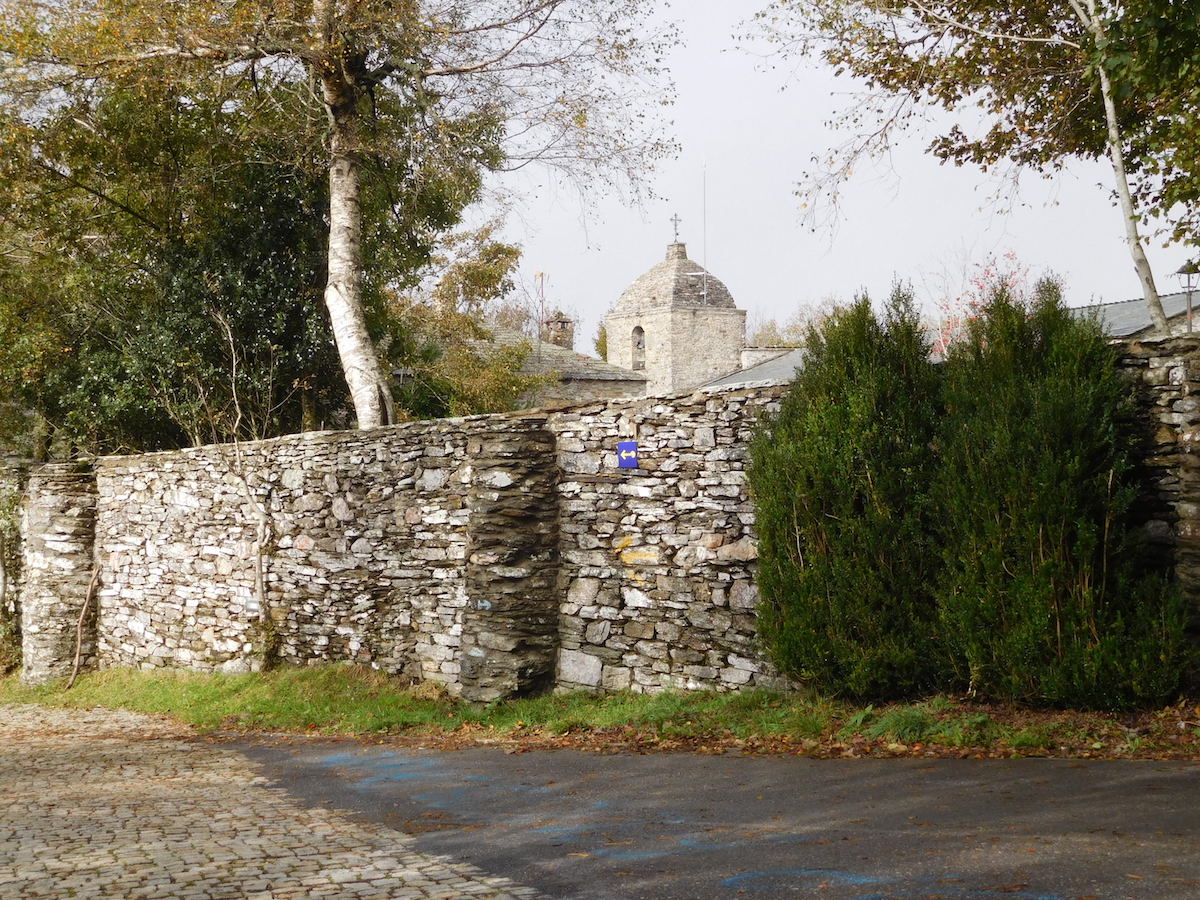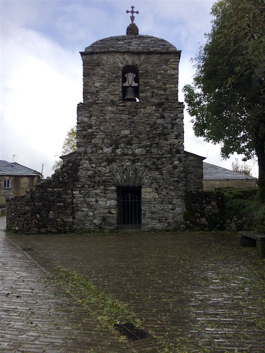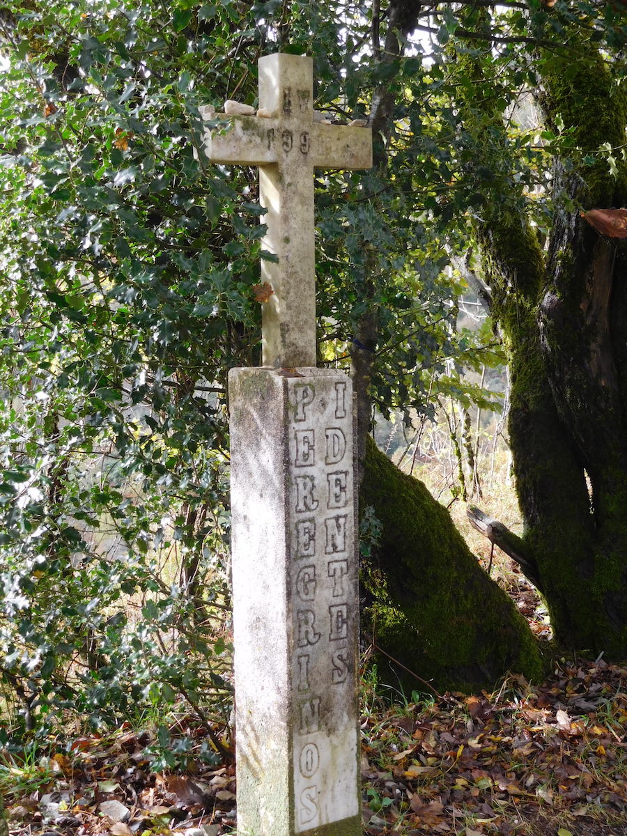 Surprise : voici la première croix de St Jacques plantée au sommet d’une chapelle de pierres sèches. Grande émotion, joie, plaisir. nous sommes bien en Galice !