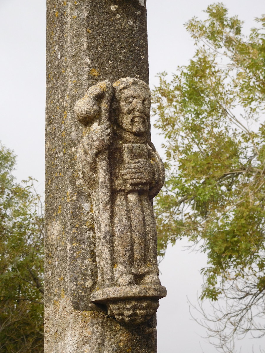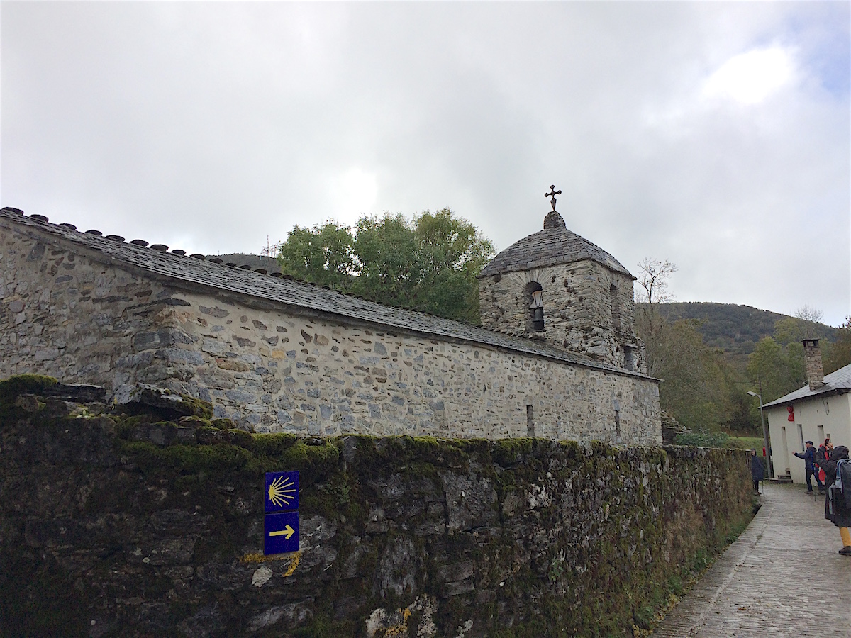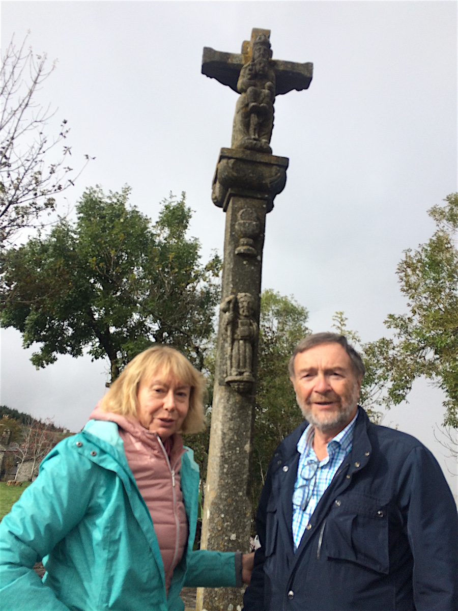 Surprise : voici la première croix de St Jacques plantée au sommet d’une chapelle de pierres sèches. Grande émotion, joie, plaisir. nous sommes bien en Galice !