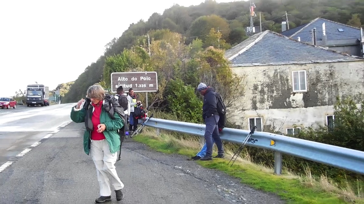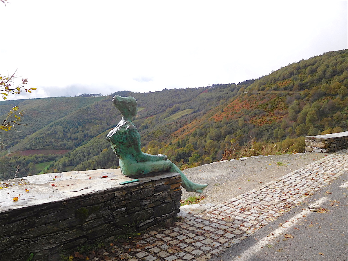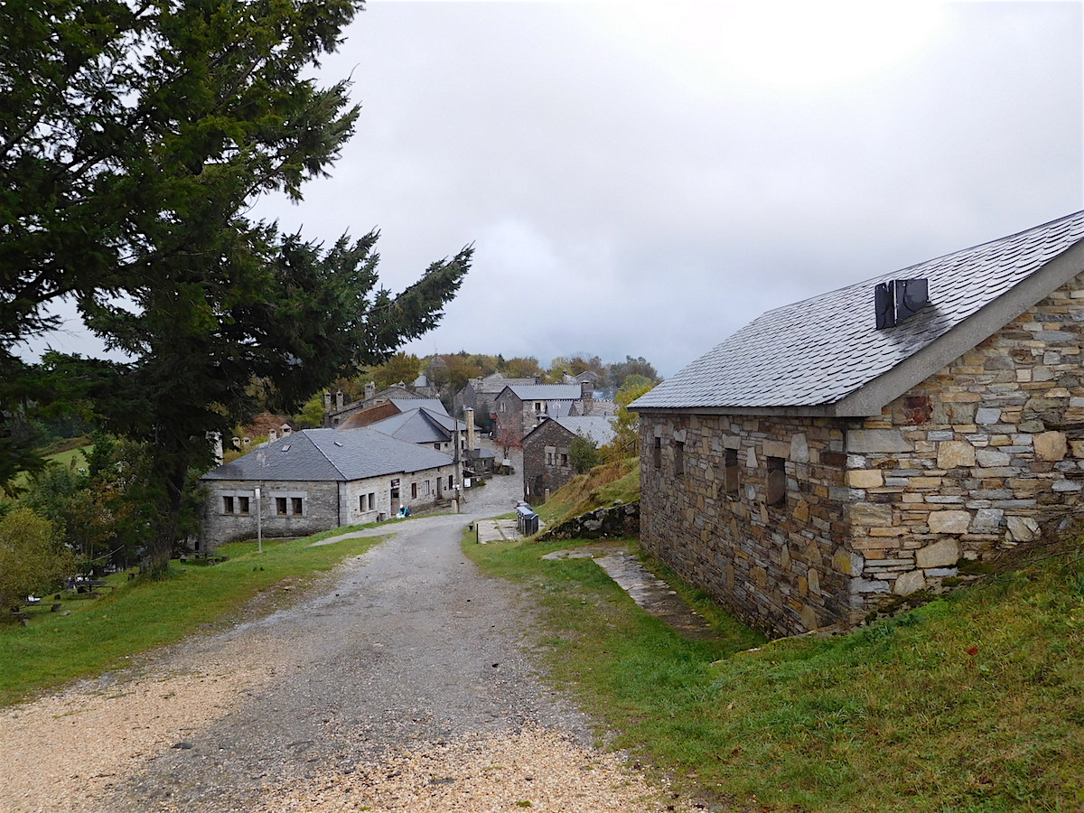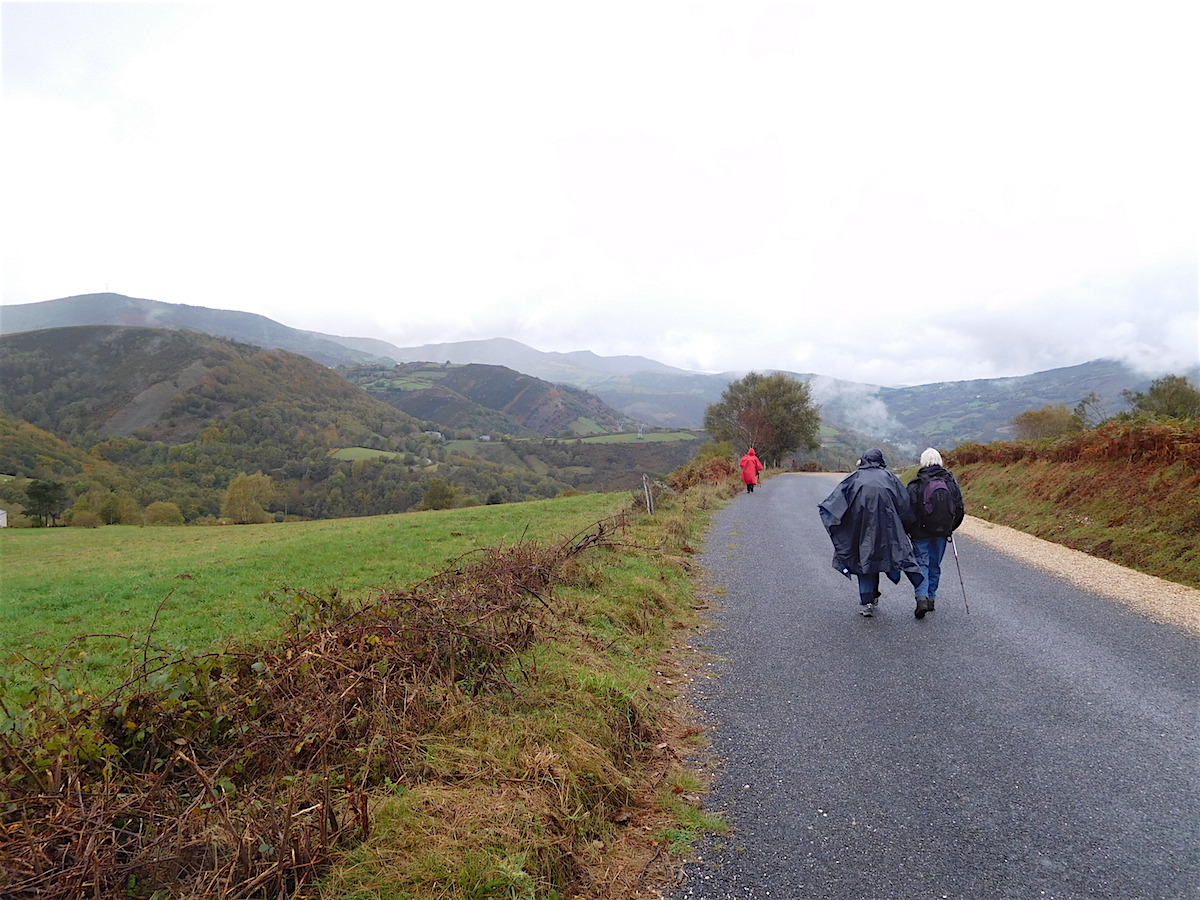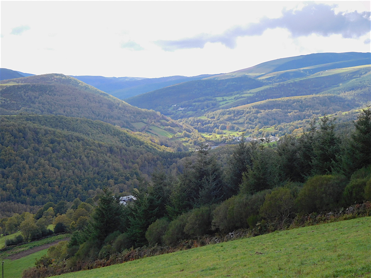 Montée à l’Alto de Poio comme de vieilles chèvres : 1.337 m quand même. Arrivée à Fonfria pour notre hébergement : belle vue panoramique sur les monts de Galice.