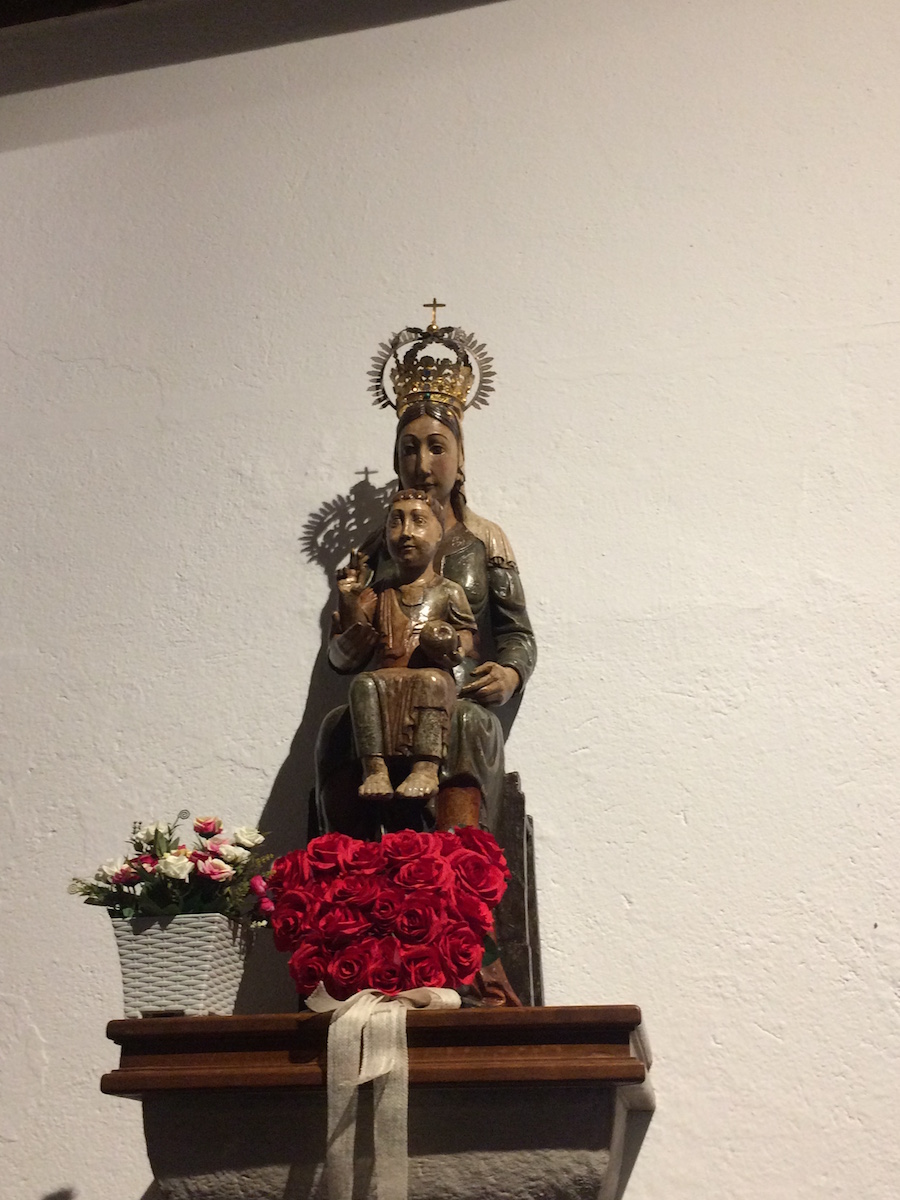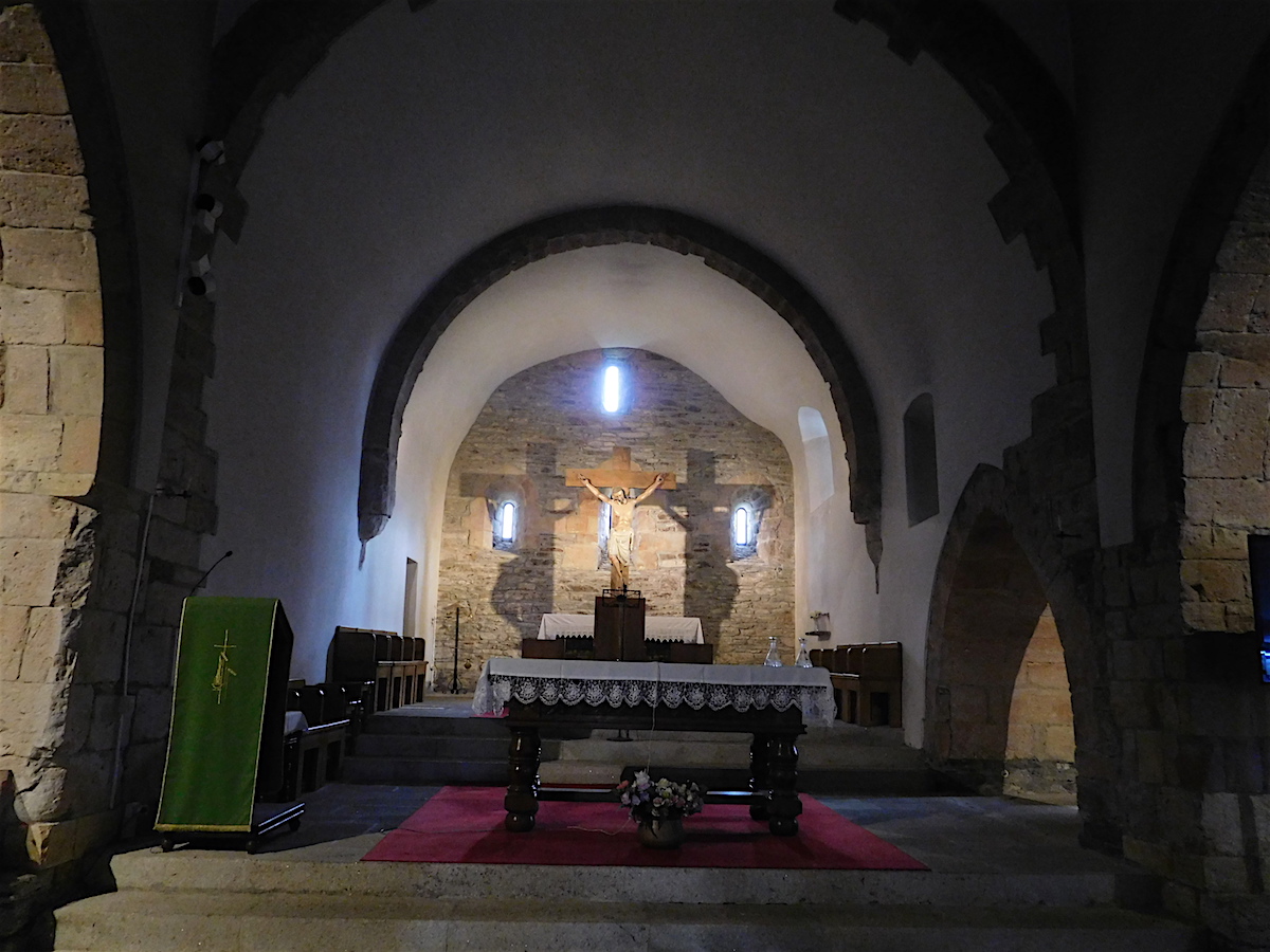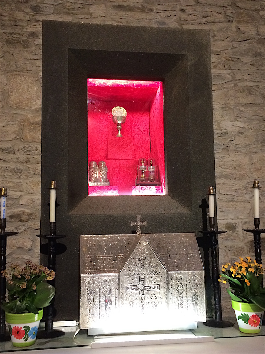 Puis lectio divina dans l’église Sta Maria la Real, église unique dans notre pèlerinage en ce qu’elle fut le lieu d’un miracle eucharistique : l’hostie se transforma en vraie chair et le vin en vrai sang. Le reliquaire est exposé sur l’autel.