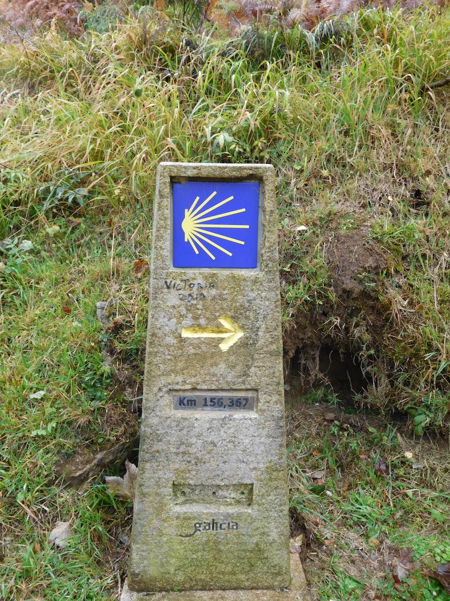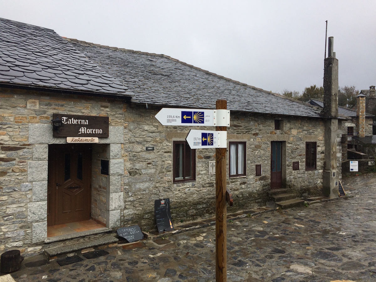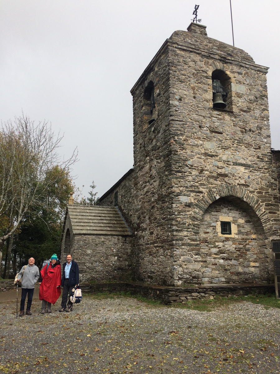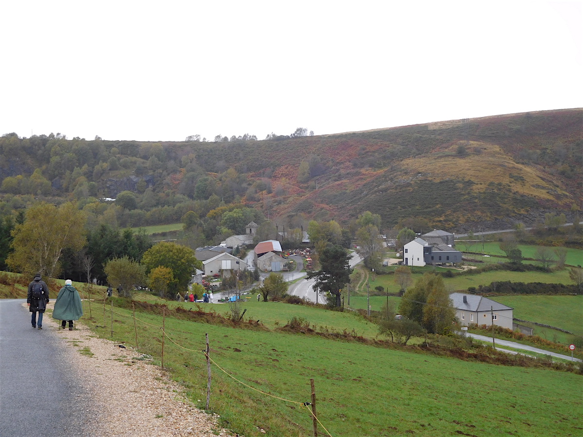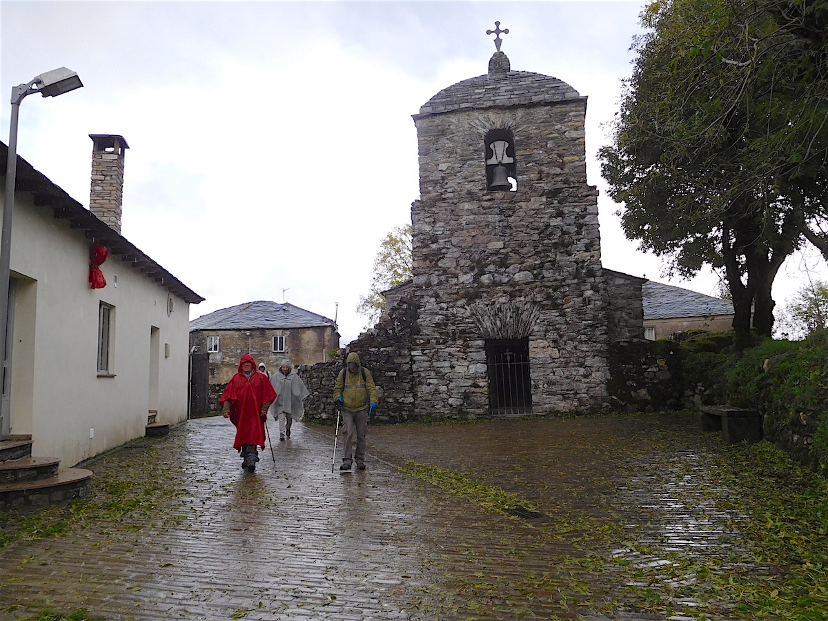 Voici le point de départ de notre pèlerinage vers Santiago à 157 km. Déjeuner sous le parapluie dans un hameau de montagne, magnifique !