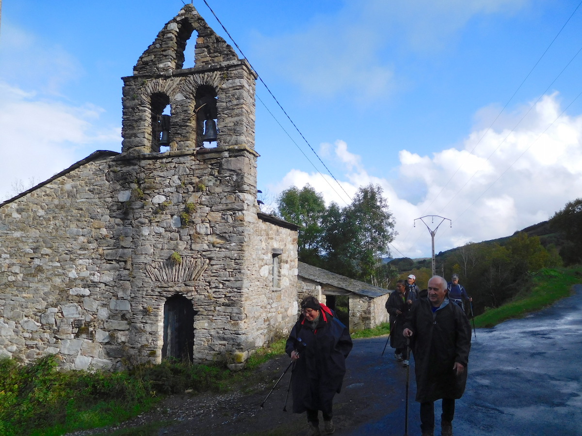 Après une nuit de repos à Carrion de Los Condès, accueillis pour la 5ème fois par les sœurs de saint Philippe Néri, nous avons retrouvé leur chapelle avec plaisir pour la messe de 8h. Ensuite, traversée de Castille y Leon sous la conduite de notre chauffeur bien-aimé, Fabrice : paysages de plaines ocrées travaillées avec art, quelques peupliers jaunissants, voilés de brume, sur fond de montagnes bleues. Devant nous, davantage de végétation, de feuillus, un peu de soleil.