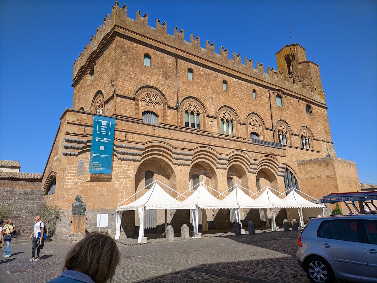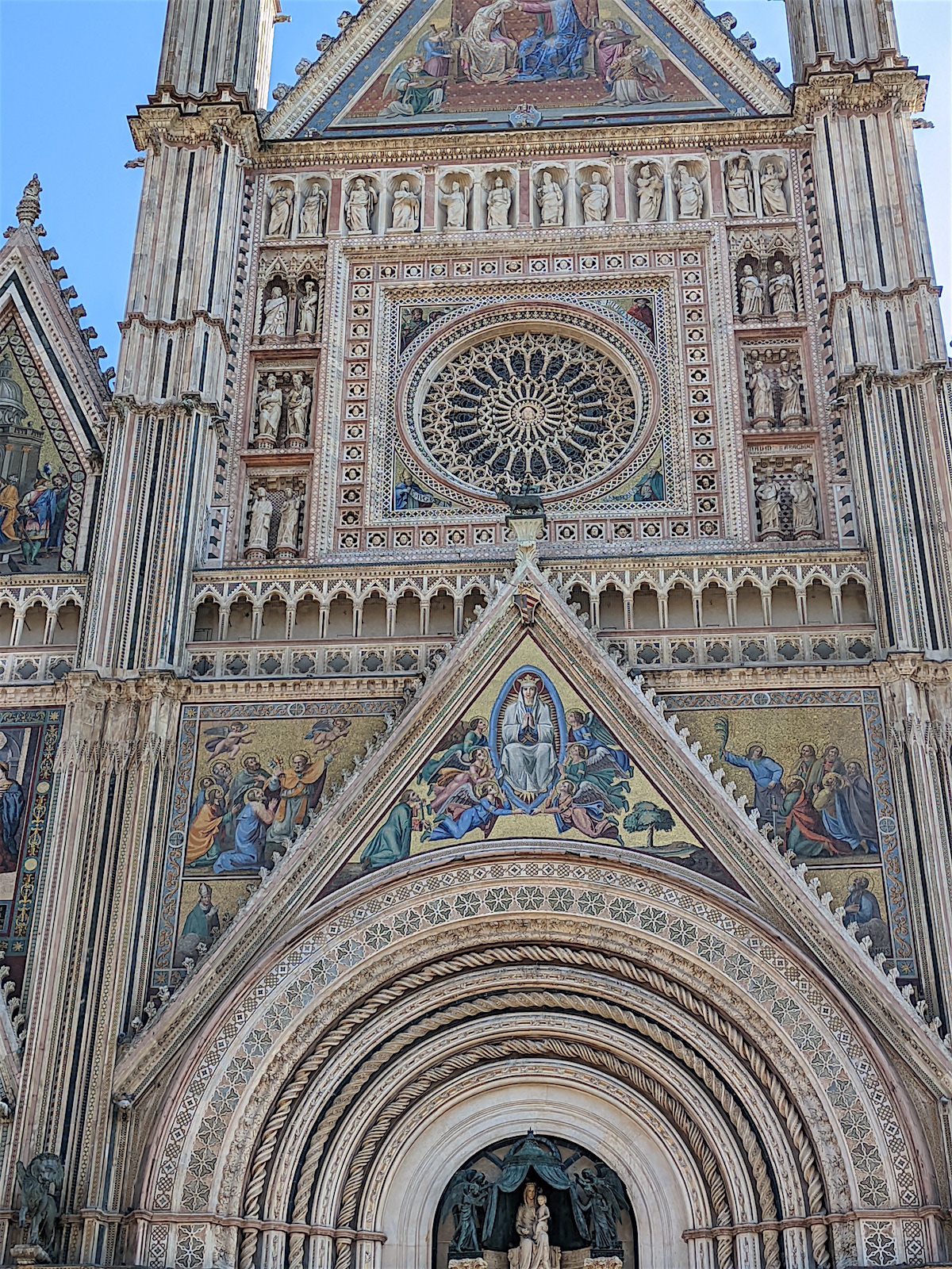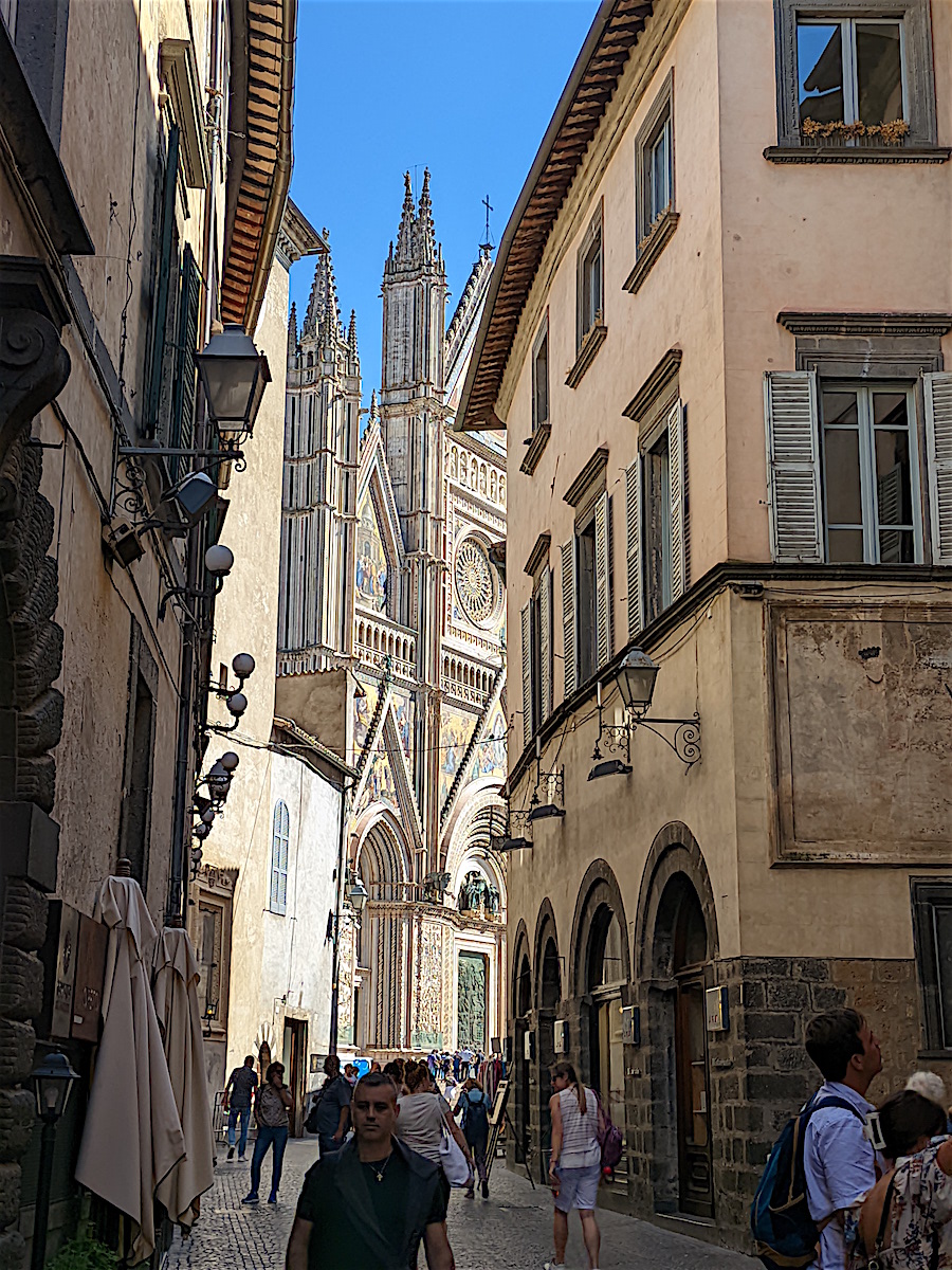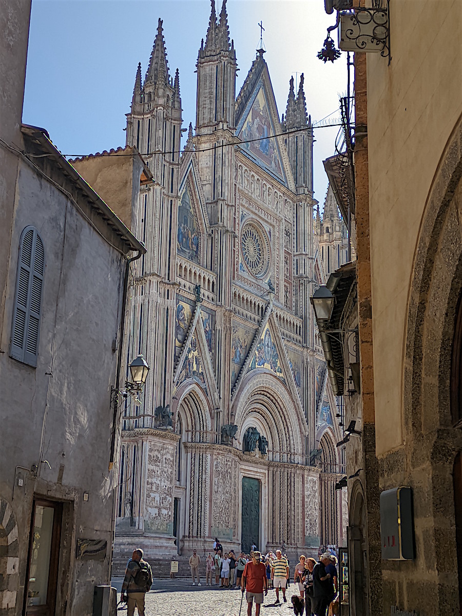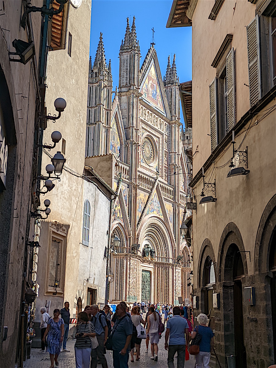 Venant de Assisi, nous découvrons Orvieto, bien à l’abri en haut de son rocher (la voiture reste en bas sur un parking et nous montons en ville par des escalateurs et ascenseurs). Et nous arrivons au Duomo ... choc garanti !