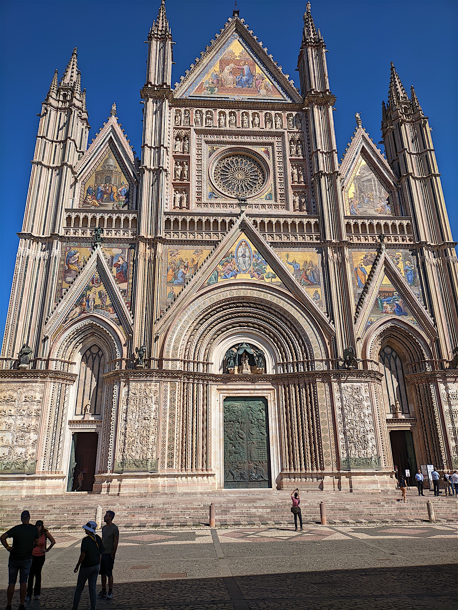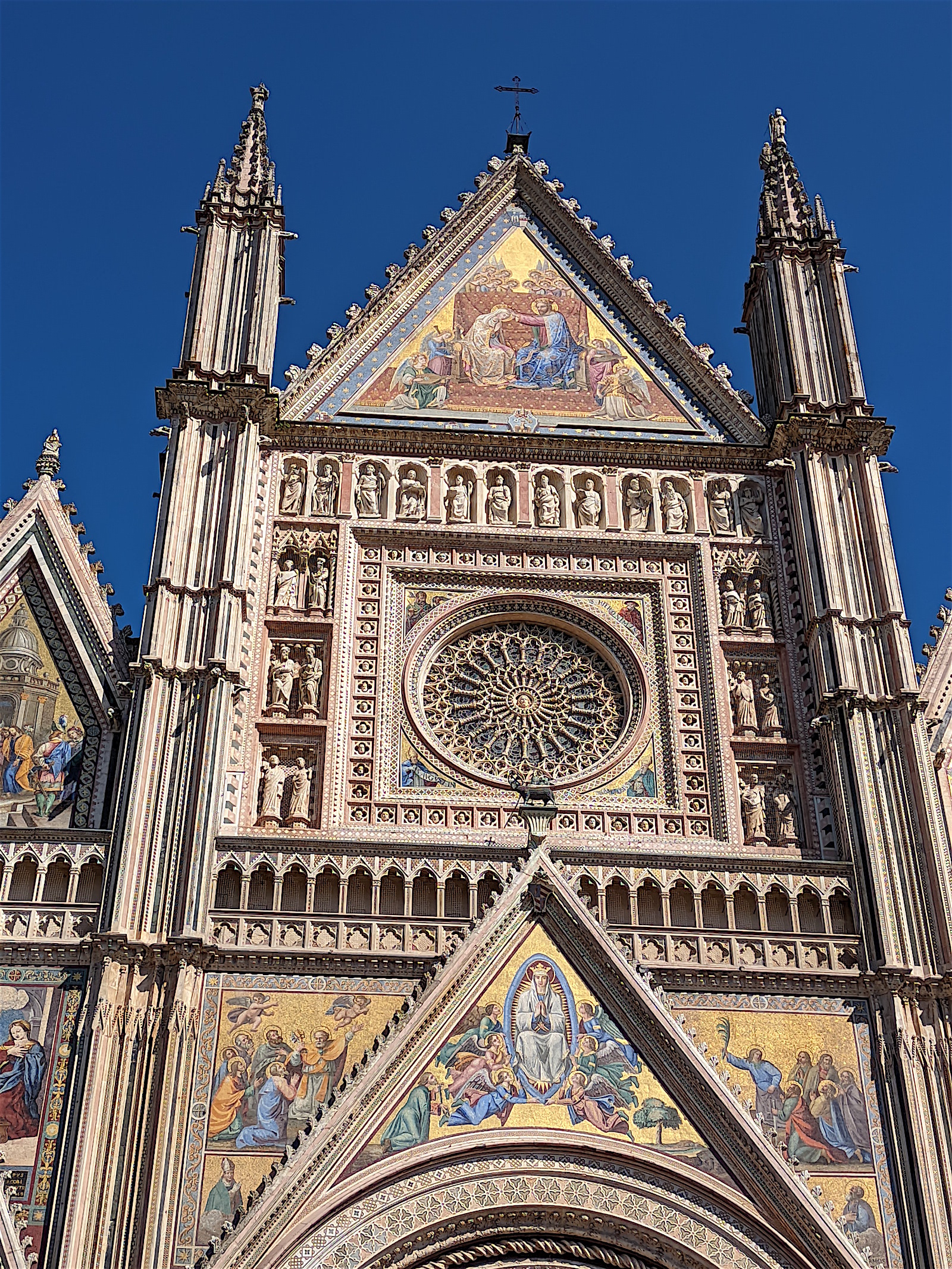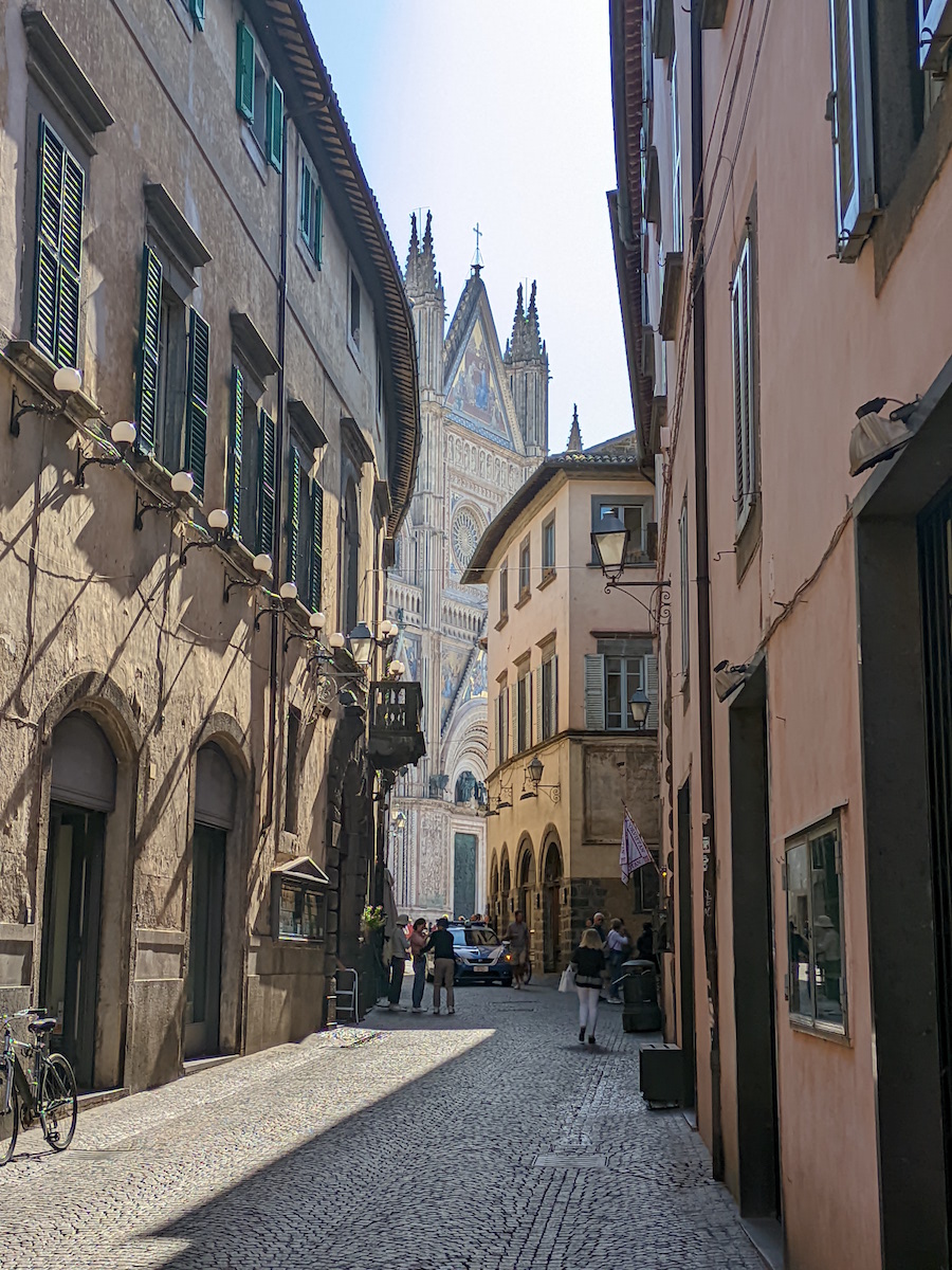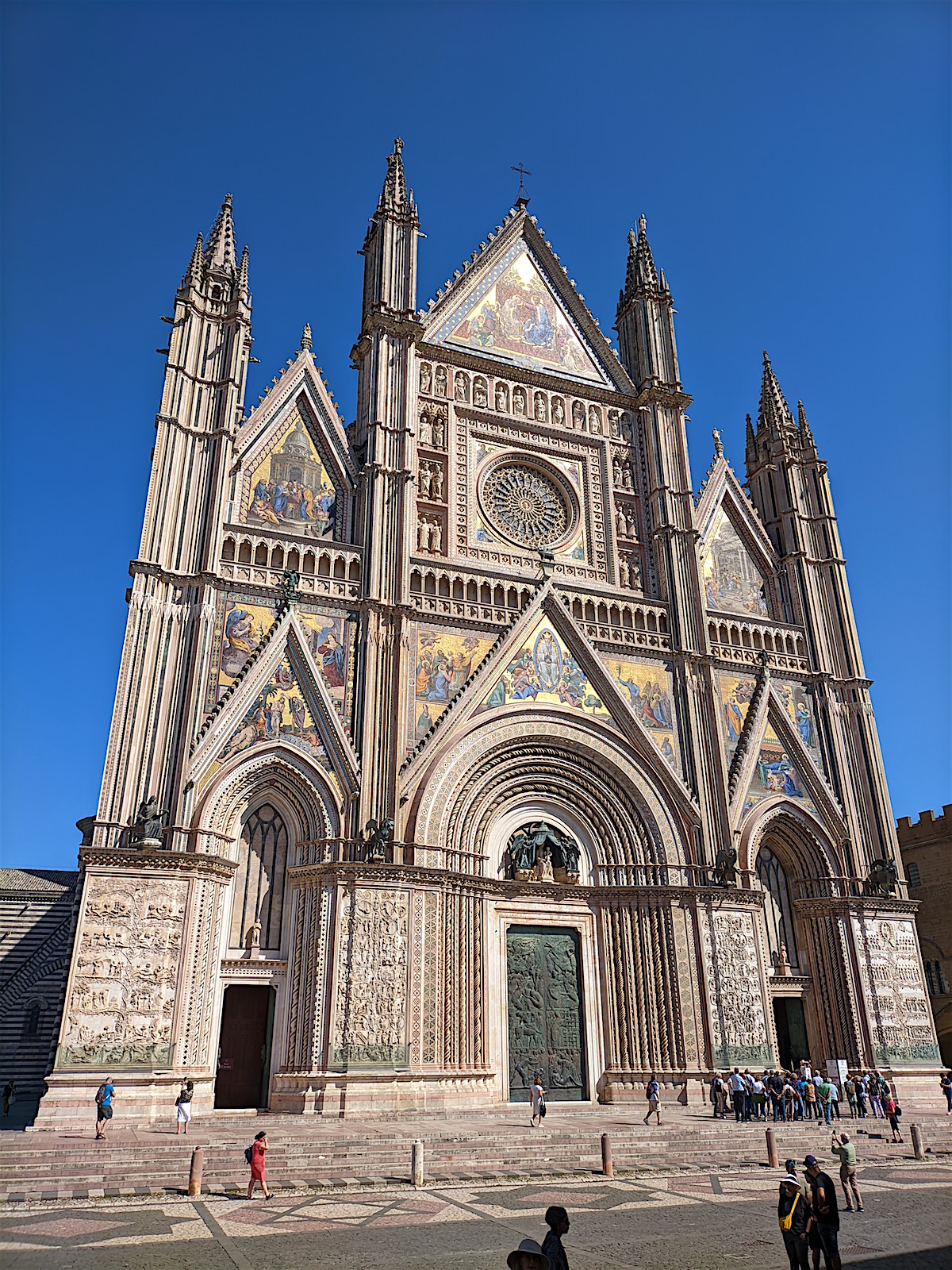 Venant de Assisi, nous découvrons Orvieto, bien à l’abri en haut de son rocher (la voiture reste en bas sur un parking et nous montons en ville par des escalateurs et ascenseurs). Et nous arrivons au Duomo ... choc garanti !