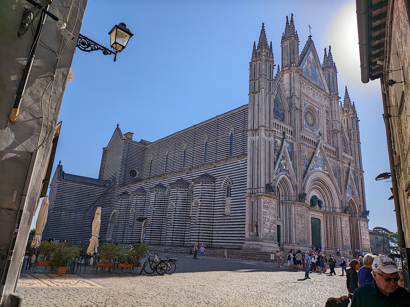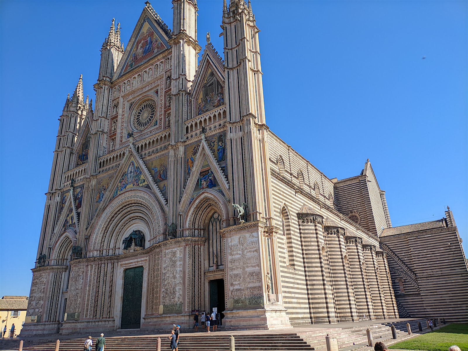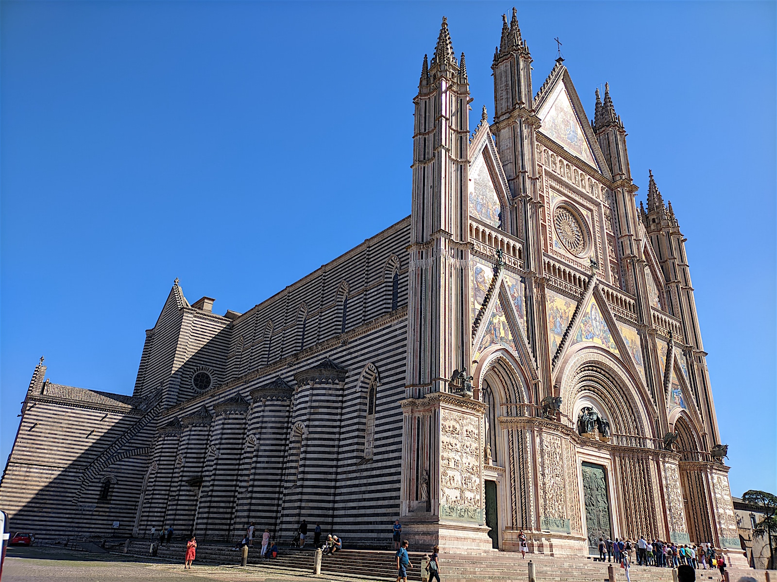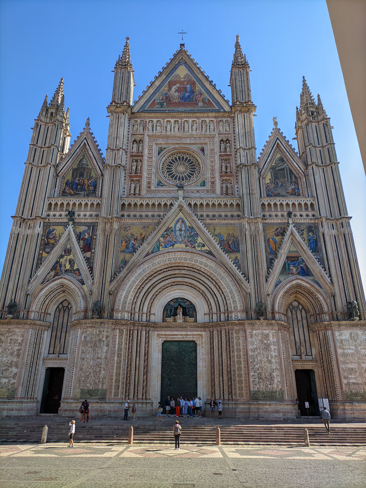 Venant de Assisi, nous découvrons Orvieto, bien à l’abri en haut de son rocher (la voiture reste en bas sur un parking et nous montons en ville par des escalateurs et ascenseurs). Et nous arrivons au Duomo ... choc garanti !
